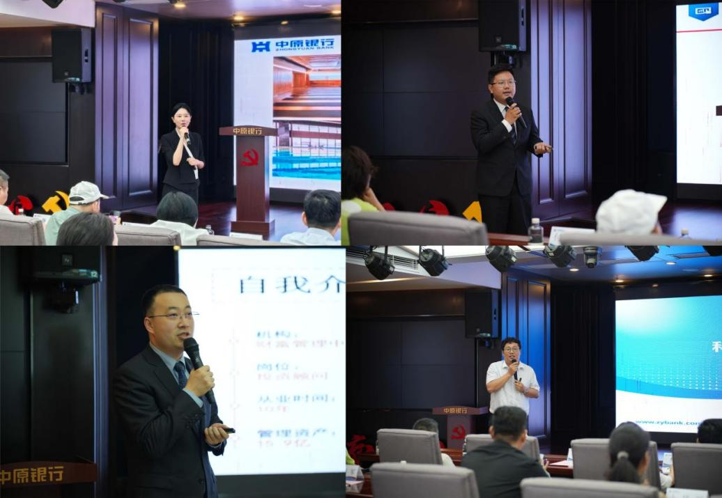 会上,中原银行郑州分行财富中心产品经理彭蕾向大家介绍了中原银行的增值服务,包含全国机场贵宾厅、机场要客服务(CIP)、健身房套餐以及各地文化行等,兼具舒适与便捷,是中原银行的一大特色。中原银行郑州分行财富中心投资顾问杨棚详细解读了二十届三中全会,从宏观、投资消费、社融数据、中观等方面分析了2024年6月宏观经济情况,并就此分析了二十届三中全会经济金融领域重点关注的方向,然后重点解读了房地产改革措施、商品房预售制度改革内容等。中原银行郑州分行财富中心投资顾问王栋向大家介绍了家族信托的含义以及发展历程,王栋具备10余年的从业经验,累计管理资产达15.9亿,他用一份典型案例生动的向企业家们解释了家族信托对于财富传承规划的重要意义。中原银行总行科技金融中心产品经理李楠从5各方面介绍科技金融的相关内容,分别是:什么是科技金融、中原银行服务科技企业情况、科技企业重点融资产品介绍、科技企业投贷联动服务介绍、科技金融最新政策解读。让企业家们受益良多。